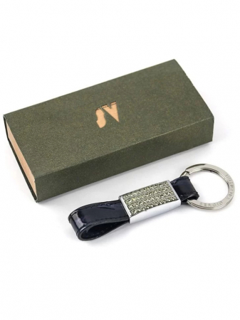 Стильный брелок для ключей. Изготовлен из высококачественной фурнитуры с использованием натуральной кожи. Упакован в индивидуальную коробку.