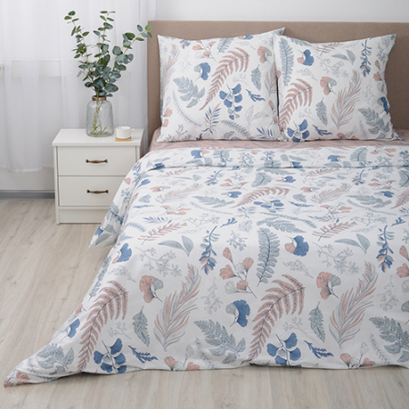 Постельное белье изготовлено из натуральной 100%-ой хлопковой ткани плотного плетения. Экологически чистый природный материал, способный сохранить яркость рисунка после множества стирок. Хорошо пропускает воздух, создавая комфортную атмосферу в вашей кровати.