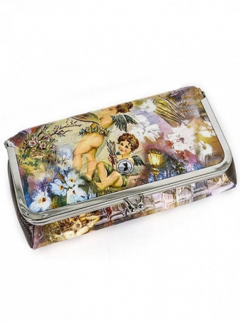 Женская кожаная косметичка от Sergio Valentini. Расположение рисунка может не совпадать с товаром на фото. Закрывается крышкой с замком поцелуйчик. Имеет одно вместительное отделение с текстильной подкладкой. Внутренняя поверхность клапана отделана декоративным зеркальным пластиком. Обращаем внимание, что блестящая поверхность несёт только декоративные функции и не предназначена для использования в качестве зеркала.
