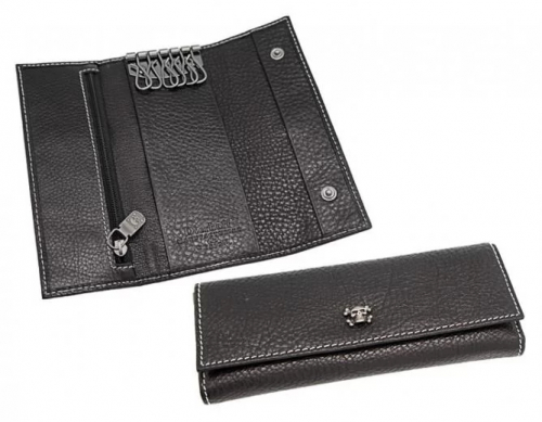 Мужская кожаная ключница от Dierhoff. Закрывается на две кнопки. Внутри 6 держателей для ключей. Внутренние боковые стороны ключницы имеют два кармашка, один из которых на молнии. Упакована в фирменную коробку.