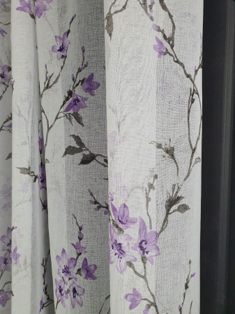 Тюль лён. Низ тюля с утяжелителем. Льняной тюль очень практичен: он удобен в эксплуатации и не нуждается в особом уходе. Занавески просто стирать при 30 градусах, они мало подвергаются загрязнениям, не поддаются электризации и даже могут снимать уровень вредного излучения, которое исходит из электрических приборов. Шторы из льняной ткани выполняют функцию «естественного кондиционера», поскольку зимой они согревают помещение, а летом наполняют его прохладой. Поэтому ткань лен широко используют для пошива штор.