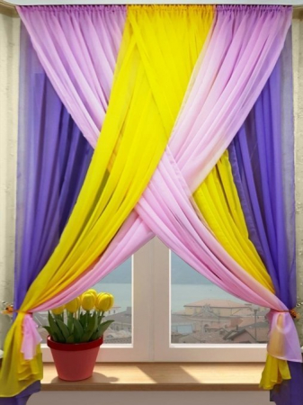 Шторы для кухни "Радуга" р-р ширина 2,8м * высота 2,0 м Ткань: вуаль Крепление: шторная лента 4см. Подхват 2шт