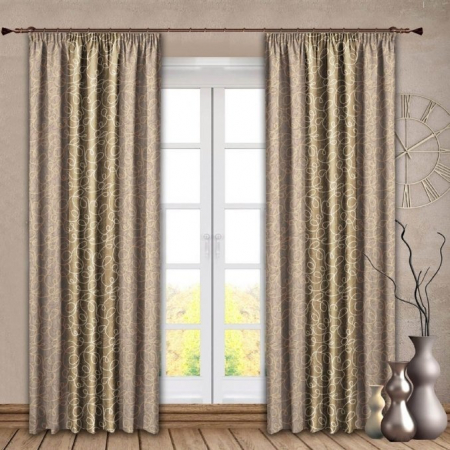 Комплект комбинированных портьер из блэкаута-жаккард. В комплекте 2 полотна. Блэкаут обладает уникальными свойствами: способностью не пропускать даже самые яркие солнечные лучи, не выцветать и не менять цвет, мягко драпироваться в складки и выглядеть всегда аккуратно. В списке плюсов находится: - дополнительная звуко- и теплоизоляция помещения, связанная с высокой плотностью ткани; - использование при производстве материала особой пропитки, придающей пыле отталкивающий эффект.