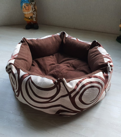 Круглая лежанка с бортиками, матрасик съемный. Легко стирать и сушить. Ткань прочная и долговечная.