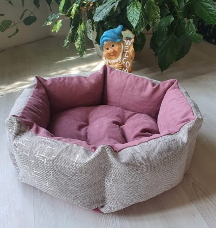 Круглая лежанка с бортиками, матрасик съемный. Легко стирать и сушить. Ткань прочная и долговечная.
