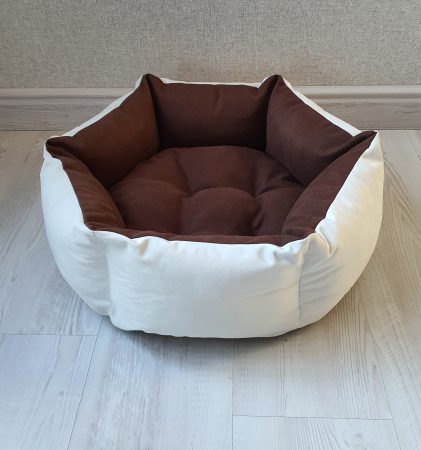 Круглая лежанка с бортиками, матрасик съемный. Легко стирать и сушить. Ткань: бортики снаружи бархат, внутренняя сторона- канвас. Обе ткани прочные и долговечнык, абсолютно не подвержены затяжкам!!!