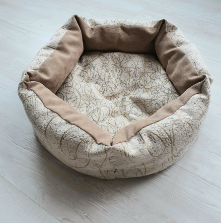 Круглая лежанка с бортиками, матрасик съемный. Легко стирать и сушить. Ткань прочная и долговечная.