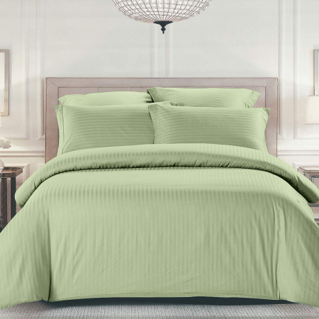 Комплект постельного белья Жемчужина олива страйп-сатин с простынёй на резинке 2-x спальный (арт. 01007121727-2-x спальный)
