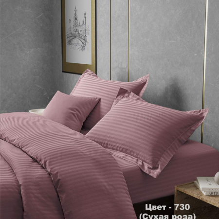 Комплект постельного белья Жемчужина сухая роза страйп-сатин с простынёй на резинке 2-x спальный (арт. 01261373357-2-x спальный)