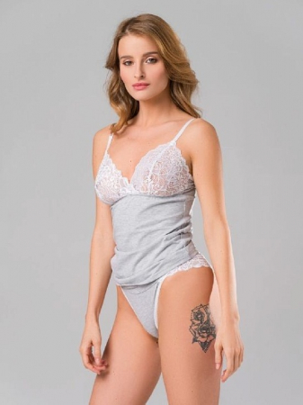 VIVALIA - качественная майка. Очаровательная майка женская из натурального хлопкового полотна прямого (прилегающего) силуэта с боковыми швами. Чашки выполнены из изящного эластичного кружева, приятного к телу. Удобные регулируемые бретели позволяют выбрать оптимальную длину. Отделка и фурнитура могут отличаться от представленных на фото.