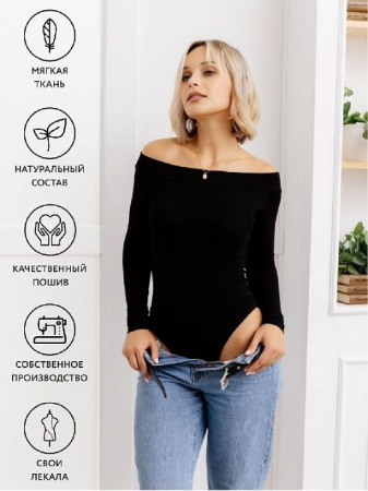 Для себя любимой - подари себе комфорт! Боди женское с длинным рукавом и открытыми плечами - сдержанная, но в то же время эффектная и элегантная модель. Минималистичное черное боди станет любимым базовым элементом вашего гардероба. Сочетайте его с пиджаком, джинсами, романтичной юбкой или используйте в качестве домашней одежды - боди женское с рукавом абсолютно универсально. Боди выполнено из мягкой, приятной к телу и дышащей ткани, которая дарит комфорт в течение всего дня. Регулируемая застежка снизу - для вашего удобства и возможности адаптировать модель к любому росту.