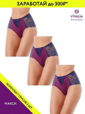 *При покупке набора трусов, ваша выгода может составлять до 100 рублей с одной единицы товара! Чем больше штук в комплекте, тем больше вы экономите! VIVALIA - качественные трусы. Классические трусы-макси из трикотажного полотна и широкого кружева с фигурным краем. Высокая линия талии. Прекрасная модель для каждой женщины. Обращаем ваше внимание, что наши изделия проходят обязательный контроль качества, и разница по ширине изделий находится в допустимых пределах согласно требованиям ГОСТ. Узор кружева, отделка и фурнитура могут отличаться от представленного на фото. Данная модель трусов представлена как в комплекте, так и по 1 шт. Просим быть внимательнее при заказе и обращать внимание на фото, цену и артикул. Артикул 24795643 поставляется в наборе из моделей разных конструкций (стринги - 1 шт; макси - 1 шт.)