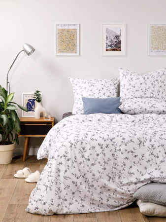 Пододеяльник и наволочки выполнены из основной ткани, простыня выполнена из ткани-компаньона.