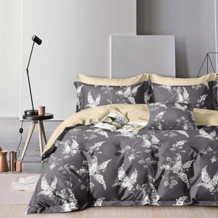 Простыня на резинке Космея выполнена из ткани-компаньона (как нижняя сторона пододеяльника на фото) и прекрасно подходит к Комплекту пододеяльник и две наволочки Космея.
