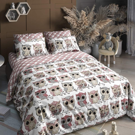 Комплект постельного белья выполнен из поплина, хлопковой мягкой ткани. Постельное белье из поплина спокойно выдерживает многократные стирки в стиральной машине без ухудшения внешнего вида и устойчиво к изнашиванию. А стильный принт сов добавит в вашу спальню особого шарма и уюта.