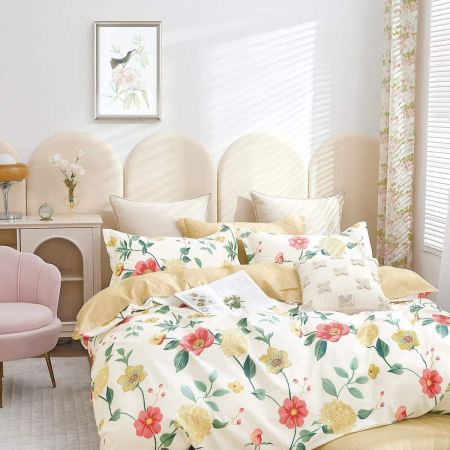 Отдельные предметы (пододеяльники, простыни, наволочки) отшиваются из остатков ткани, поэтому могут быть выполнены полностью из основной ткани или ткани-компаньона