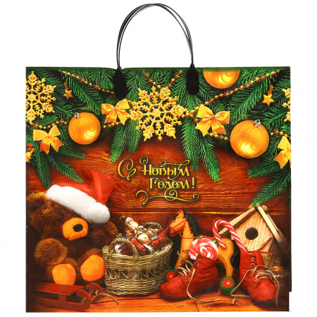 Пакет подарочный ПВД с пластиковой ручкой 38х35см "Новогодняя затея", 90 мкм, ламинированный (Россия) (арт. 053798)