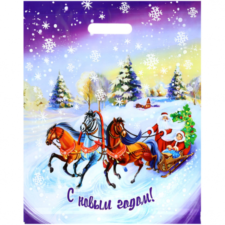 Пакет подарочный ПВД с вырубной ручкой 38х47см "Волшебная повозка", 60 мкм, ламинированный (Россия) (арт. 053775)