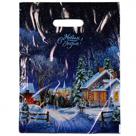 Пакет подарочный ПВД с вырубной ручкой 30х40см "Снежная дорожка", 35 мкм (Россия) (арт. 038505)