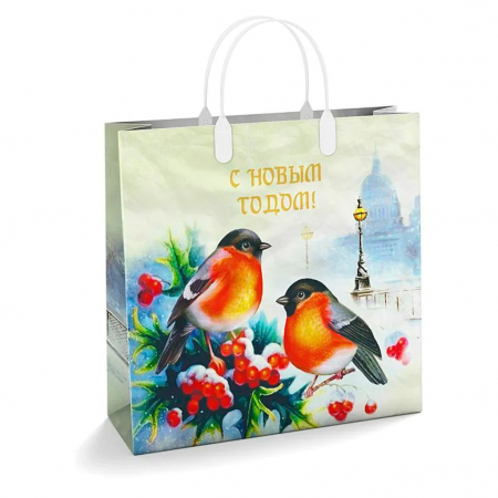 Пакет подарочный мягкий пластик пл/ручк 30х30см "Пернатые друзья" 150мкм ламинир