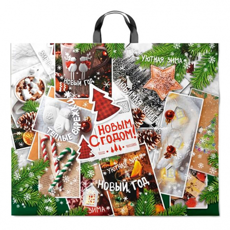 Пакет подарочный ПВД с петлевой ручкой 60х50см "Время чудес", 70 мкм (Россия) (арт. 000307)