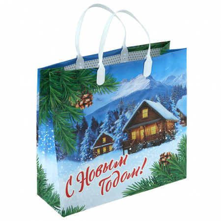 Пакет подарочный мягкий пластик с пластиковой ручкой 30х30см "Домики в горах", 150 мкм, ламинированный (Россия) (арт. 105395)