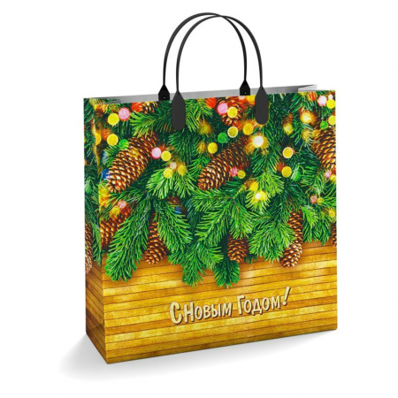 Пакет подарочный мягкий пластик с пластиковой ручкой 30х30см "Еловые лапки", 150 мкм, ламинированный (Россия) (арт. 000312)
