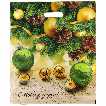 Пакет подарочный ПВД с вырубной ручкой 40х47см "Новогодняя увертюра", 45 мкм (Россия) (арт. 038525)