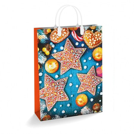 Пакет подарочный мягкий пластик с пластиковой ручкой 30х40см "Пряничные звезды", 150 мкм, ламинированный (Россия) (арт. 000323)