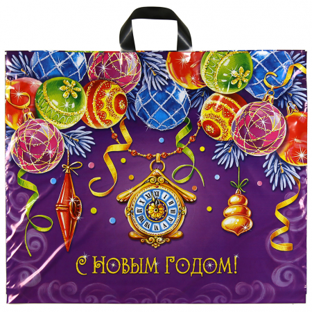 Пакет подарочный ПВД с петлевой ручкой 60х50см "Старинные часы", 70 мкм (Россия) (арт. 038486)