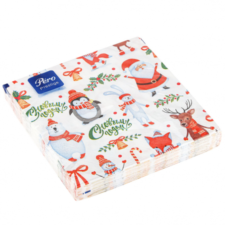 Салфетки бумажные 33х33см "Pero Prestige", 3-х слойные, 20 штук в упаковке, Веселые друзья (Россия) (арт. 072140)