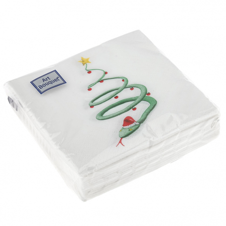 Салфетки бумажные "Art Bouquet" 20х20см, 2-х слойные, 30 штук в упаковке, 100% целлюлоза, "Новогодняя змейка" (Россия) (арт. 105463)