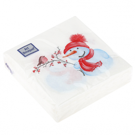 Салфетки бумажные "Art Bouquet" 20х20см, 2-х слойные, 30 штук в упаковке, 100% целлюлоза, "Милый снеговик" (Россия) (арт. 070148)