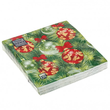 Салфетки бумажные "Bouquet Home Collection Classic" 33х33см, 3-х слойные, 20 штук в упаковке, 100% целлюлоза, "Украшения на новогоднюю ель" (Россия) (арт. 105455)