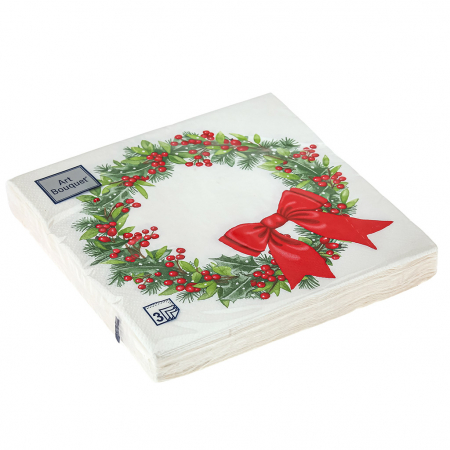 Салфетки бумажные "Art Bouquet" 33х33см, 3-х слойные, 20 штук в упаковке, 100% целлюлоза, "Венок с бантиком" (Россия) (арт. 105456)