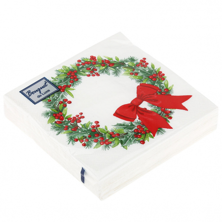 Салфетки бумажные Bouquet de Luxe 24х24 3 слоя 25л "Венок с бантиком"