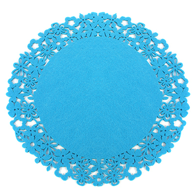 Салфетка под горячее (сервировочная) "Цветочный кант" д38см фетр, цвет - голубой (Китай) (арт. 054907)