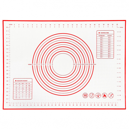 Коврик силиконовый, армированный для раскатки теста и выпекания 50х70см, белый с цветной разметкой, микс (Китай) (арт. 051815)