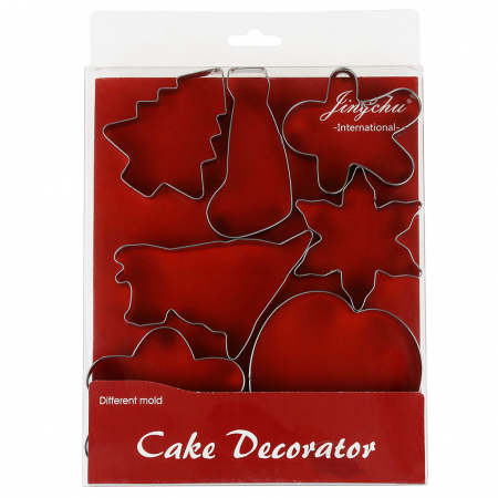 Форма для печенья из нержавеющей стали набор 7 штук: сердце 7,5х1,3см; звезда 7,8х6,7х1,3см; снежинка д6,5х1,3см; елка 5,5х6,7х1,3см; собака 6,5х7х1,3см; носок рождественский 4х7,5х1,3см; человечек 5,7х6х1,3см, в пластиковой коробке (Китай) (арт. 075642)