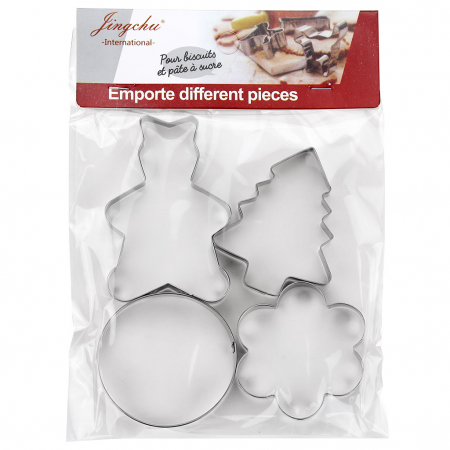 Форма для печенья из нержавеющей стали набор 4 штуки: цветок д6х1,3см; круг д6х1,3см; елка 5,3х6,6х1,3см; мишка 5,4х8х1,3см, на картоне (Китай) (арт. 075627)