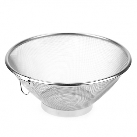 Сито-дуршлаг из нержавеющей стали "Шармель" д22см h9,8см, на подставке, с ободком, с крючком (Китай) (арт. 034802)
