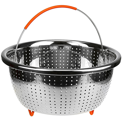 Дуршлаг-чаша из нержавеющей стали д24см h12см, цветная прорезиненная ручка и ножки (Китай) (арт. 020684)