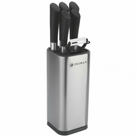 Набор ножей, 7пр: нож поварской, разделочный, для хлеба, универсальный, для овощей, овощечистка, лезвие - сталь, прорез/ручки/декор, подставка подар/упаковка с пл/руч