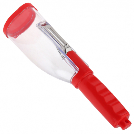 Овощечистка-овощерезка из нержавеющей стали прямая 20х5,3х5,5см, цветное пластмассовое основание, с ручкой, с контейнером, цвета в ассортименте: красный; салатовый, в/эт пакете (Китай) (арт. 072156)