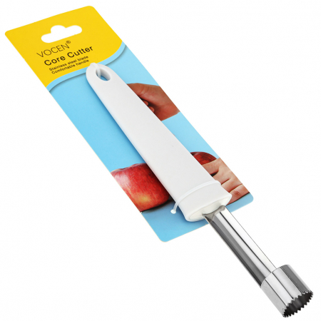"Бельгия" Нож для вырезания сердцевины из нержавеющей стали 22х3,4х2,2см, пластмассовая ручка, цвет - белый, на картоне (Китай) (арт. 049707)