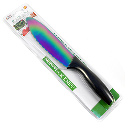 Нож кухонный из нержавеющей стали 28см, лезвие 16см, пластмассовая ручка "Радужный" в блистере (Китай) (арт. 056946)