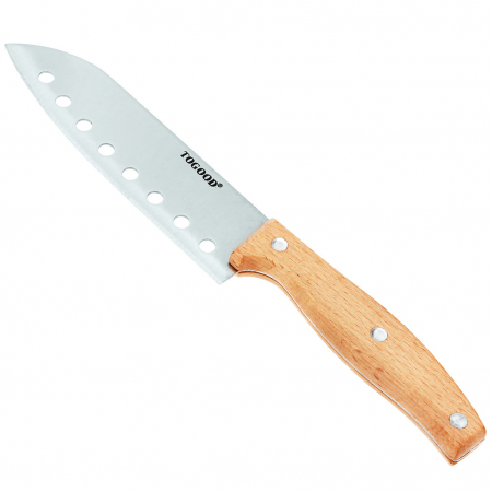 "Синьор" Нож кухонный 160мм из нержавеющей стали, широкое лезвие с отверстиями, деревянная ручка, в блистере (Китай) (арт. 077924)