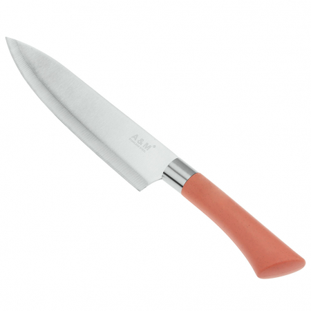 "Мрамор" Нож кухонный 195мм из нержавеющей стали, широкое лезвие, пластмассовая ручка, цвета в ассортименте: бежевый, коралловый, в блистере (Китай) (арт. 077965)