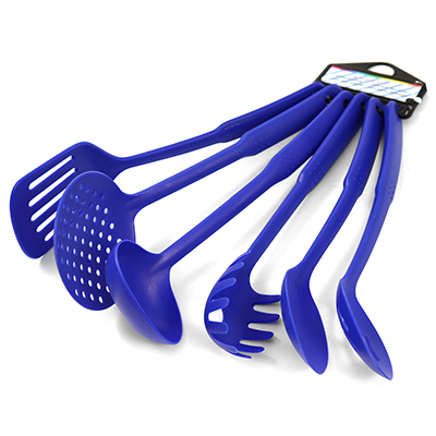 Кухонный набор пл 6пр (ложка,лож с проре,лоп с прорез,лож д/спаг,полов,шумовка) для тефлона синий (ДМ)