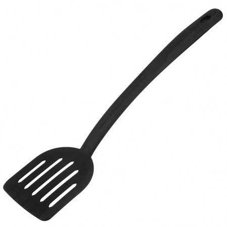 "Марка" Лопатка кулинарная с прорезями пластмассовая для тефлоновой посуды 37,5х8,5см, цвет - черный (Китай) (арт. 049111)